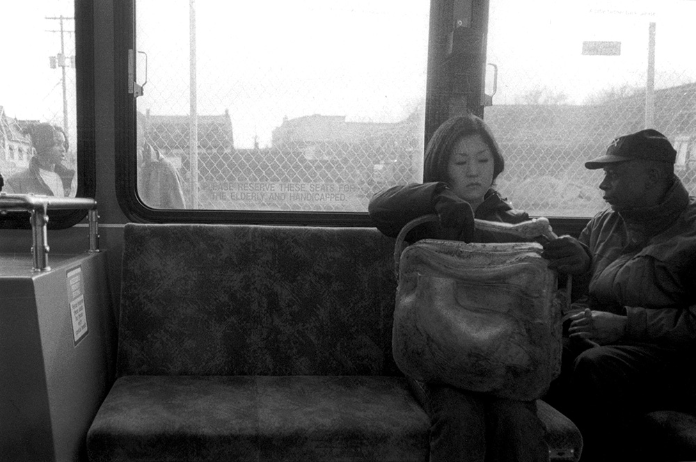 Reflecting on my approach, it seems important to note that I brought the works "Bags" to different places where the paths of people from various countries intersect. At public transportation, airport, bus, teeming with passengers, each with their own subjective experience of time, language and nationality, seems to question the space and passenger’s identity.